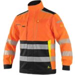 Pánská výstražná blůza, ramena zesílena materiálem CORDURA, rukávy s nastavitelnou manžetou na suchý zip, kryté zapínání na zip, suché zipy a druky, levá náprsní kapsa na zip, pravá krytá klopou, v pravé kapse odnímatelné pouzdro na ID kartu, na levém rukávu kapsička na tužky, boční kapsy na zip, segmentované reflexní pásky (šíře 5 cm), kontrastní žluté/oranžové a reflexní doplňky. Doporučené použití: stavebnictví, silničáři, údržba, logistika, letecká a lodní doprava.