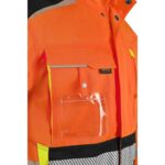 Pánská výstražná blůza, ramena zesílena materiálem CORDURA, rukávy s nastavitelnou manžetou na suchý zip, kryté zapínání na zip, suché zipy a druky, levá náprsní kapsa na zip, pravá krytá klopou, v pravé kapse odnímatelné pouzdro na ID kartu, na levé