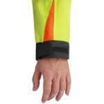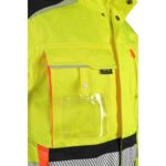 Pánská výstražná blůza, ramena zesílena materiálem CORDURA, rukávy s nastavitelnou manžetou na suchý zip, kryté zapínání na zip, suché zipy a druky, levá náprsní kapsa na zip, pravá krytá klopou, v pravé kapse odnímatelné pouzdro na ID kartu, na levé