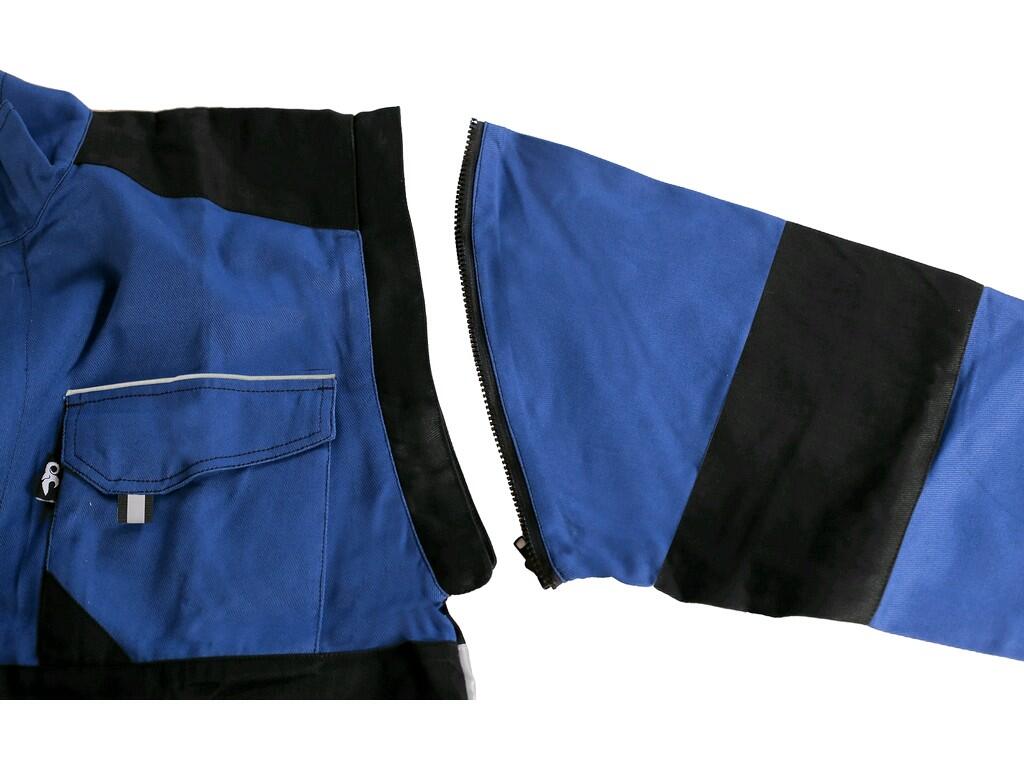 Dámská montérková blůza, odepínací rukávy s pružnou manžetou, kryté zapínání na zip a suché zipy, náprsní kapsy s klopami, skrytá náprsní kapsa na zip, jednoduché boční kapsy, spodní část na bocích do gumy, reflexní doplňky. Doporučené použití: stavebnictví, lehký průmysl, logistika, skladová manipulace, autoservisy, údržba, montáže, zemědělství, zahrada, hobby.