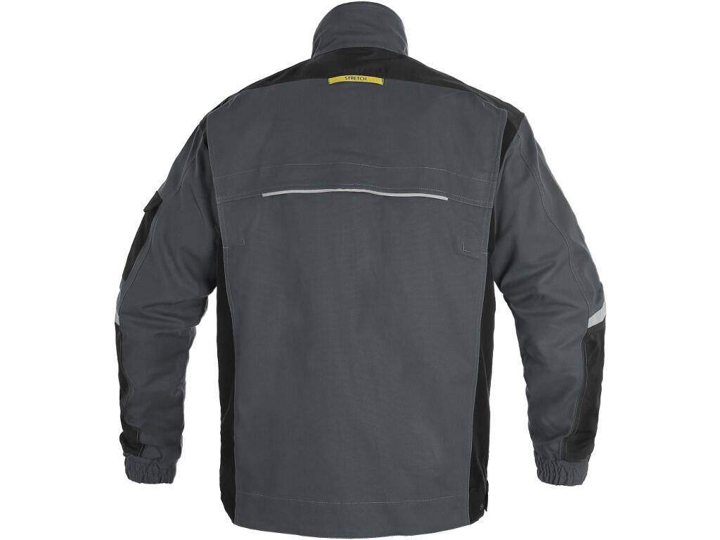 Pánská montérková blůza, strečová tkanina umožňující volný pohyb, ramena vyztužena 600D polyesterem, rukávy s nastavitelnou manžetou, kapsička s klopou na levém rukávu, kryté zapínání na zip a druky, náprsní kapsy – na druk a zip, boční kapsy na zip, regulovatelný pas, větrání na zádech, reflexní doplňky. Doporučené použití: strojírenství, stavebnictví, lehký průmysl, automobilový průmysl, logistika, skladová manipulace, spedice, autoservisy, údržba, montáže, zemědělství, zahrada, hobby.