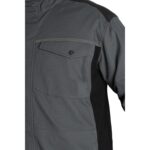 Pánská montérková blůza, strečová tkanina umožňující volný pohyb, ramena vyztužena 600D polyesterem, rukávy s nastavitelnou manžetou, kapsička s klopou na levém rukávu, kryté zapínání na zip a druky, náprsní kapsy – na druk a zip, boční kapsy na zip,