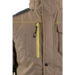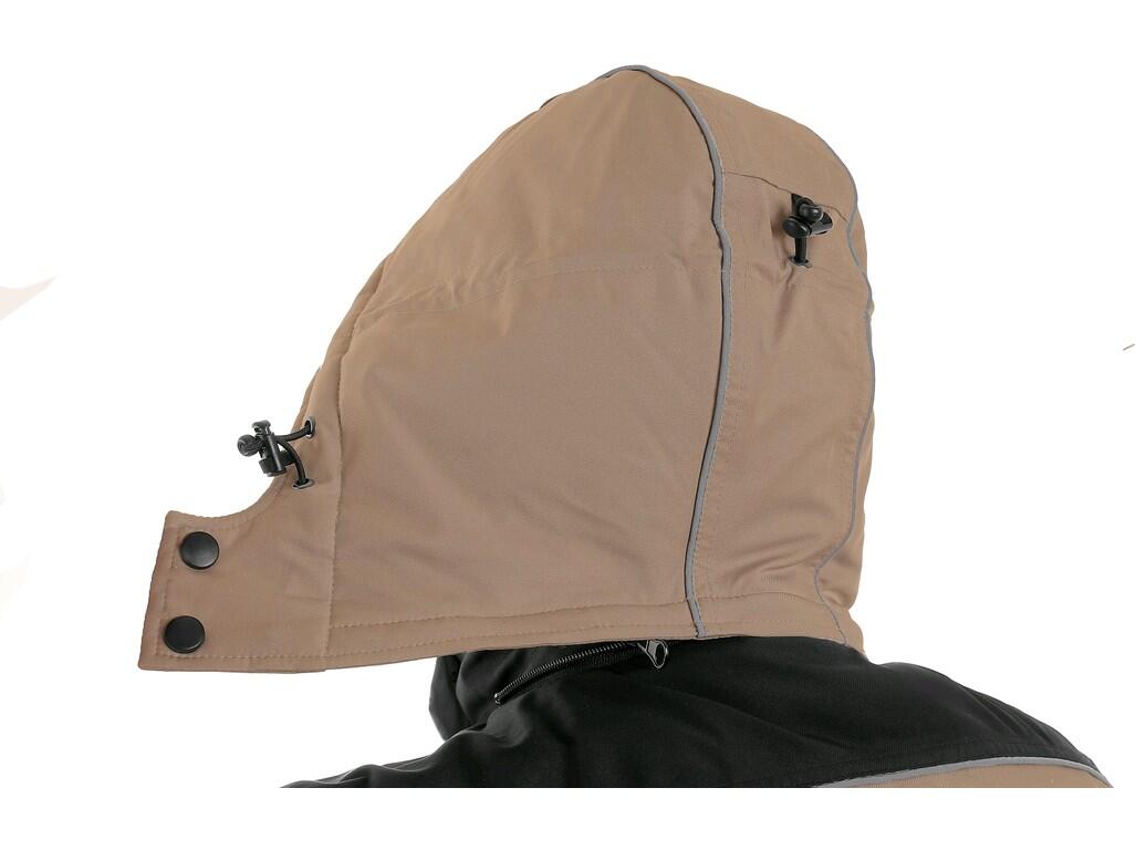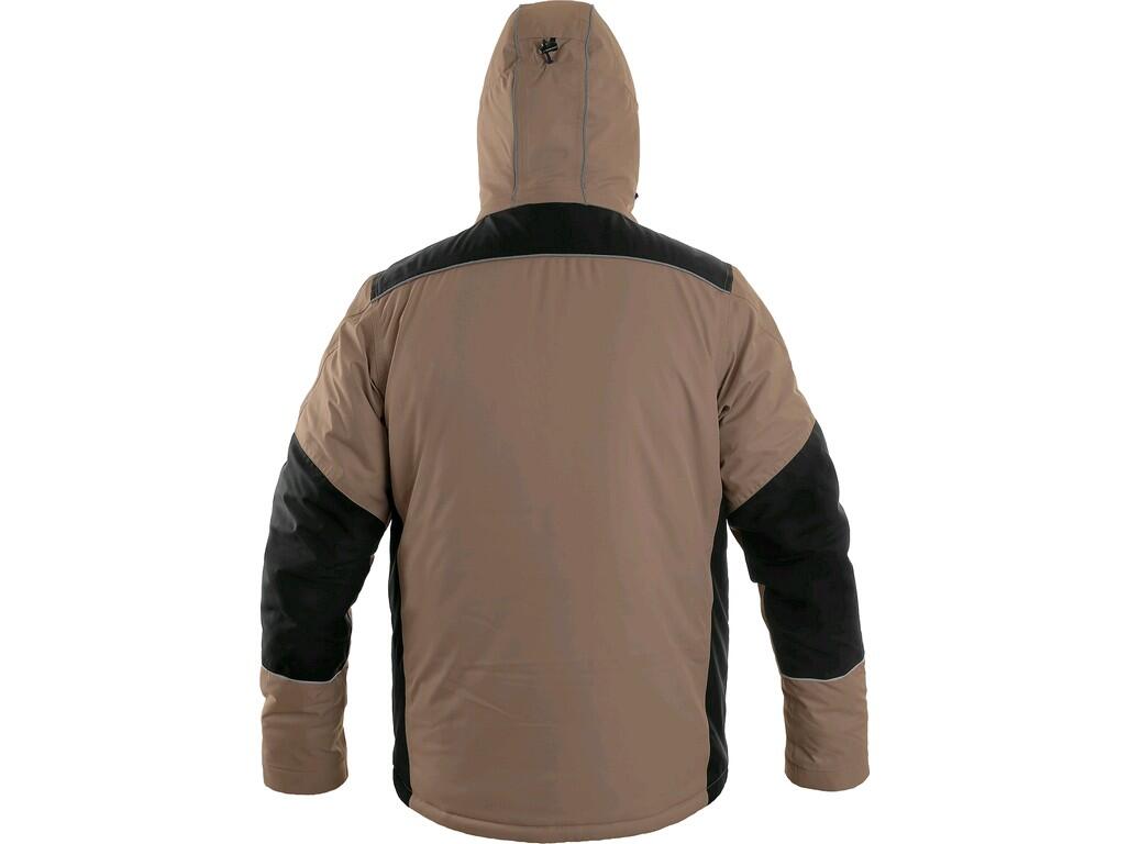 Pánská zateplená bunda, odolná proti vodě a větru, kryté zapínání na zip, odepínací kapuce, vnitřní manžety v rukávech, plastové poutko pod náprsní kapsou, stahování v dolním okraji, lepené švy, TPU membrána, reflexní doplňky. Náprsní kapsy na zip nebo druky, 2 boční kapsy na zip, 3 vnitřní kapsy.