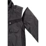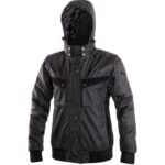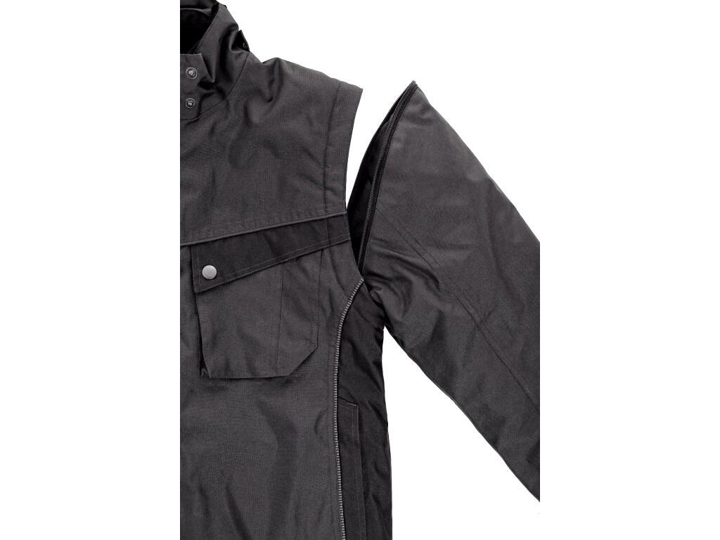Dámská zateplená bunda 2 v 1, zapínaní na zip krytý légou, odepínací kapuce, fleecový límec, odepínací rukávy, rukávy a dolní okraj bundy ukončeny pružnou manžetou, plastové poutko pod pravou náprsní kapsou, lepené švy, reflexní doplňky. Kapsy: 2 náprsní kapsy, 2 boční kapsy na zip, 1 vnitřní kapsa.