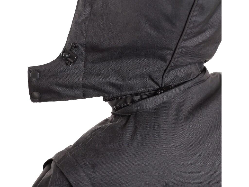Pánská zateplená bunda 2 v 1, zapínaní na zip krytý légou, odepínací kapuce, fleecový límec, odepínací rukávy, regulovatelné manžety na rukávech, plastové poutko pod pravou náprsní kapsou, stahování v dolním okraji, lepené švy, reflexní doplňky. Kaps