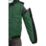 Pánská zateplená bunda 2 v 1, zapínaní na zip krytý légou, odepínací kapuce, fleecový límec, odepínací rukávy, regulovatelné manžety na rukávech, plastové poutko pod pravou náprsní kapsou, stahování v dolním okraji, lepené švy, reflexní doplňky. Kapsy: 3 náprsní kapsy na zip, 2 spodní kapsy na zip, 1 vnitřní kapsa.
