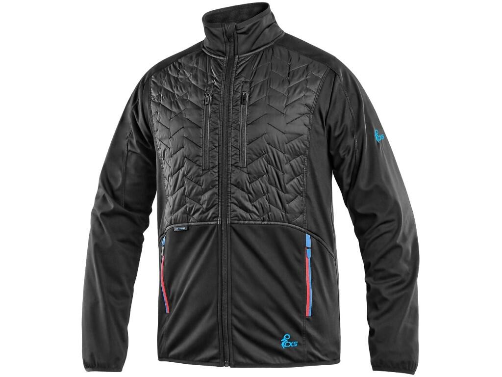 Bunda CXS LEONIS, pánská, černá s HV modro/červenými doplňky