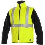 Pánská výstražná bunda 5 v 1 s odnímatelnou vnitřní bundou, odolná proti vodě a větru, 3M reflexní pruhy, lepené švy. Vnější bunda: 2 spodní kapsy s patkou, 2 náprsní kapsy, zip krytý légou zapínanou na druky, kapuce v límci, regulovatelné manžety na suchý zip. Možnost regulace velikosti v pase i v dolní části bundy. Vnitřní kapsy: na pravé straně kapsa na mobil, na levé straně větší kapsa na peněženku. Vnitřní bunda s odepínacími fleecovými rukávy, 2 boční kapsy kryté patkou na suchý zip, vnitřní kapsa na levé straně. Doporučené použití: stavebnictví, silničáři, řidiči, logistika, údržba, policie, záchranáři.