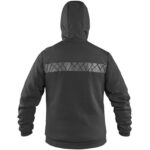 Pánská zimní vycházková bunda z kombinovaných materiálů. Ramena a kapuce tvoří voděodolný softshell materiál, zatímco tělo a rukávy jsou z teplé pleteniny. Kapuce a tělo jsou zateplené příjemným umělým kožíškem. Bunda má boční kapsy na zip, vnitřní náprsní kapsu na zip a výrazný reflexní potisk.
