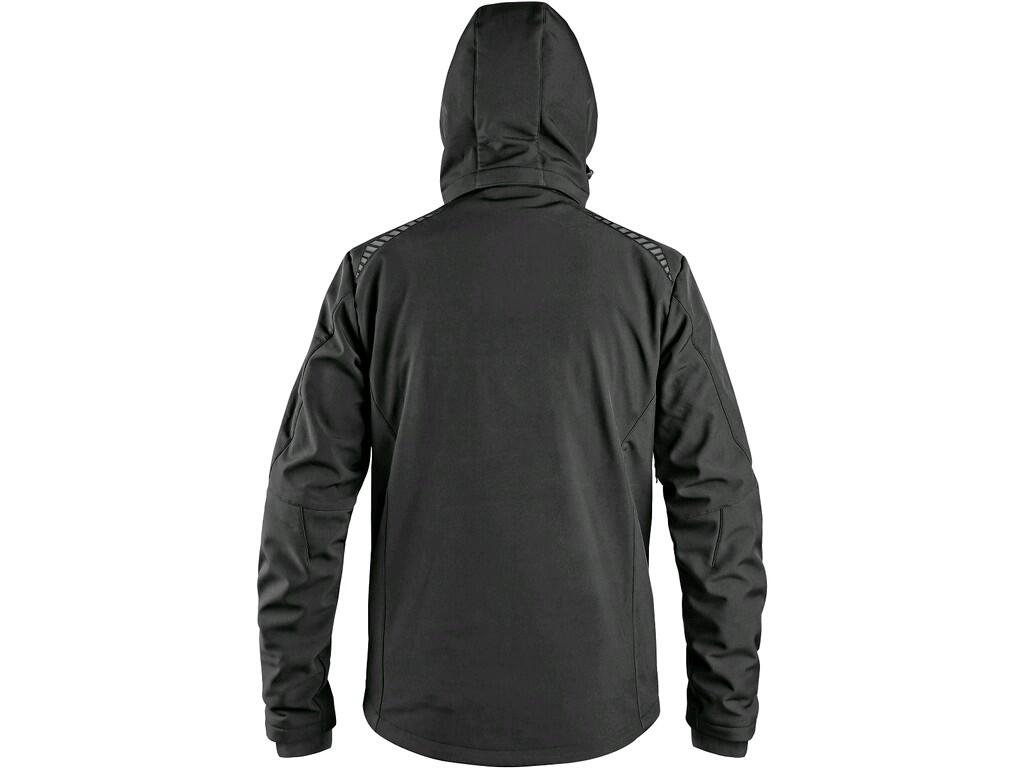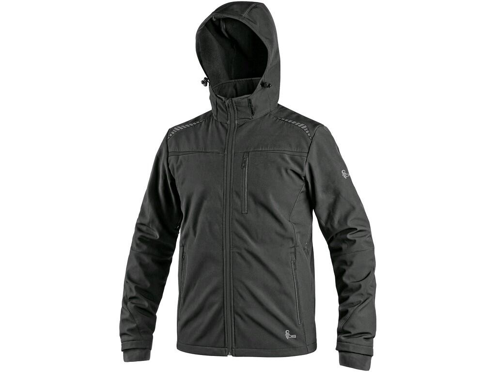 Pánská softshellová bunda s odepínací kapucí, odolná proti vodě a větru, zapínaní na zip, větrání v podpaží, náprsní kapsa na zip, boční kapsy na zip, vnitřní manžety v rukávech, stahování v dolním okraji, reflexní doplňky, TPU membrána. Odolnost materiálu proti průniku vody 8 000 mm mimo oblast švů, paropropustnost 3 000 g/m2/24h.