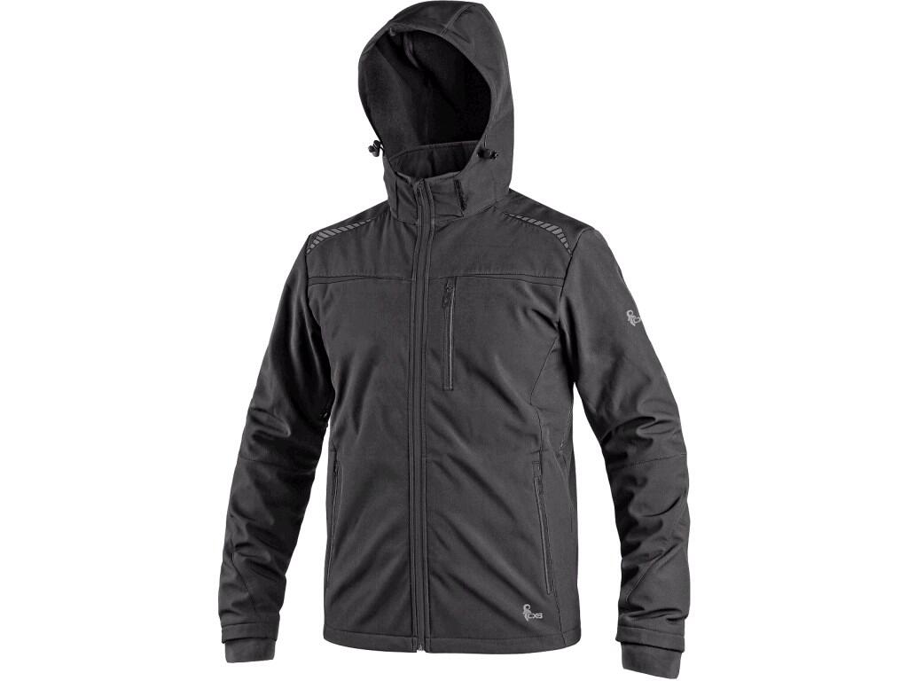 Pánská softshellová bunda s odepínací kapucí, odolná proti vodě a větru, zapínaní na zip, větrání v podpaží, náprsní kapsa na zip, boční kapsy na zip, vnitřní manžety v rukávech, stahování v dolním okraji, reflexní doplňky, TPU membrána. Odolnost materiálu proti průniku vody 8 000 mm mimo oblast švů, paropropustnost 3 000 g/m2/24h.