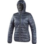 Dámská zateplená bunda s kapucí a reflexními doplňky. Bunda má zapínání na zip, rukávy a spodní lem do gumičky, 2 boční kapsy na zip s reflexními doplňky a reflexní výpustky vzadu na bocích.