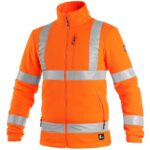 Pánská výstražná fleecová bunda s reflexními pruhy. Rukávy do gumy, boční i náprsní kapsy na zip, stahování v dolním okraji, podšívka ze síťoviny. Doporučené použití: stavebnictví, silničáři, řidiči, letecká a lodní doprava, logistika, řidiči kamionů