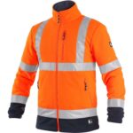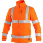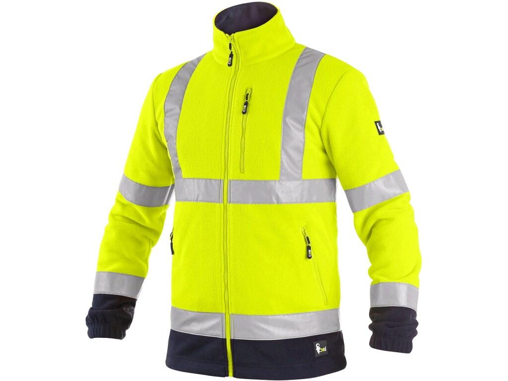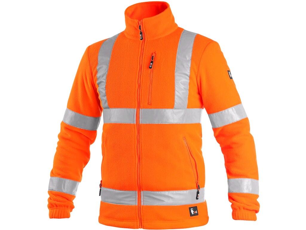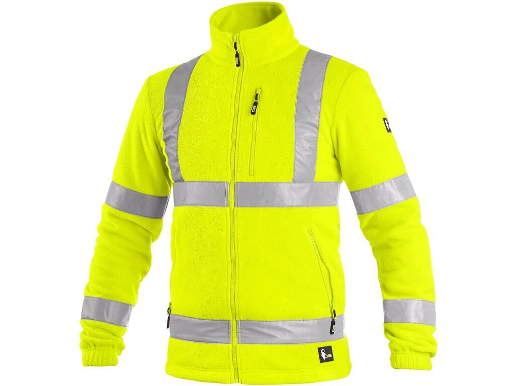 Pánská výstražná fleecová bunda s reflexními pruhy. Rukávy do gumy, boční i náprsní kapsy na zip, stahování v dolním okraji, podšívka ze síťoviny. Doporučené použití: stavebnictví, silničáři, řidiči, letecká a lodní doprava, logistika, řidiči kamionů