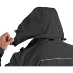 Pánská softshellová bunda, odolná proti vodě a větru, odepínací kapuce, větrání v podpaží, náprsní kapsy – na druk a zip, boční kapsy na zip, vnitřní manžety v rukávech, stahování v dolním okraji, reflexní doplňky, vnitřní náprsní kapsa, TPU membrána