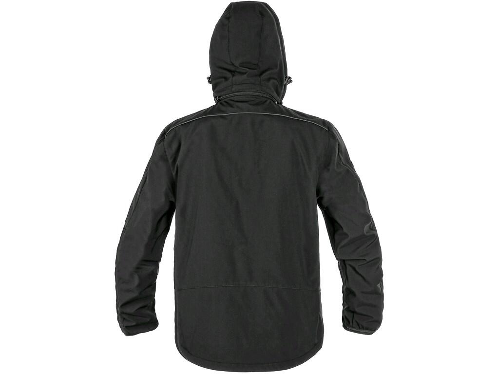 Pánská softshellová bunda, odolná proti vodě a větru, odepínací kapuce, pružné manžety v rukávech, stahování v dolním okraji, černé reflexní výpustky, fleecový límec i vnitřní strana bundy, TPU membrána, odolnost materiálu proti průniku vody (mimo oblast švů a mimo materiálu kolem kapes) 10 000 mm, paropropustnost 3 000 g/m2/24 hod. Na levém rukávu kapsička na zip, 2 spodní kapsy na zip, náprsní kapsa na zip.