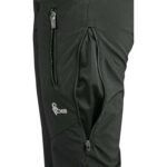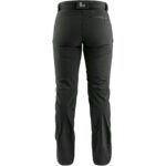Dámské softshellové kalhoty pro volný čas, flexibilní pas s možností upravení velikosti, poutka na opasek, 4 přední kapsy, zadní kapsa na zip, větrání na stehně a v zadní kolenní části, reflexní doplňky, TPU membrána. Odolnost materiálu proti průniku vody 5000 mm mimo oblast švů, paropropustnost 5000 g/m2/24h.