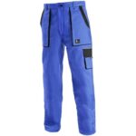 Pánské montérkové kalhoty, pas s poutky na opasek, vzadu do gumy, přední kapsy, boční kapsa na svinovací / skládací metr, boční kapsa na mobil / peněženku, zdvojená kolena, zadní kapsa s klopou, reflexní doplňky.