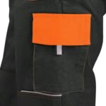 Pánské montérkové kalhoty, pas s poutky na opasek, vzadu do gumy, přední kapsy, boční kapsa na svinovací / skládací metr, boční kapsa na mobil / peněženku, zdvojená kolena, zadní kapsa s klopou, reflexní doplňky. Doporučené použití: stavebnictví, lehký průmysl, logistika, skladová manipulace, autoservisy, údržba, montáže, zemědělství, zahrada, hobby.