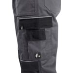 Pánské montérkové kalhoty, pas s poutky na opasek, vzadu do gumy, přední kapsy, boční kapsa na svinovací / skládací metr, boční kapsa na mobil / peněženku, zdvojená kolena, zadní kapsa s klopou, reflexní doplňky.