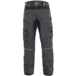 Pánské montérkové kalhoty, strečová tkanina umožňující volný pohyb, pas s poutky na opasek, přední kapsy s kapsou na zip, multifunkční kapsy na obou stranách, kolena zesílena 600D polyesterem s možností vložení kolenních výztuh, dvě zadní kapsy – jedna s klopou, zadní spodní lem nohavice vyztužen 600D polyesterem, reflexní doplňky. Doporučené použití: strojírenství, stavebnictví, lehký průmysl, automobilový průmysl, logistika, skladová manipulace, spedice, autoservisy, údržba, montáže, zemědělství, zahrada, hobby.