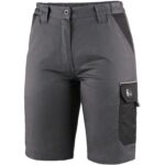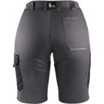 Dámské montérkové kraťasy z lehkého materiálu, pas s poutky na opasek a gumou v bocích, přední klínové kapsy, boční kapsa s klopou, kapsa na skládací/svinovací metr, zadní jednoduchá kapsa na pravé straně, reflexní doplňky. Doporučené použití: letní pracovní oděv, stavebnictví, strojírenství, lehký průmysl, automobilový průmysl, logistika, skladová manipulace, spedice, autoservisy, údržba, montáže, zemědělství, učiliště, zahrada, hobby.