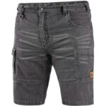 Pánské džínové kraťasy, pas s poutky na opasek a plastovým přívěskem, 2 přední kapsy, 2 zadní kapsy z materiálu CORDURA, boční multifunkční kapsy, na pravé kapse poutko pro kladivo.