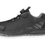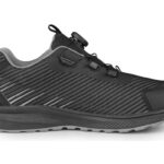 Bezpečnostní ESD polobotka s prodyšným svrškem, kompozitní špicí a textilní antipenetrační stélkou, reflexní doplňky. Speciální utahovací systém umožňuje rychlé stažení i uvolnění obuvi. Materiál: perforovaný textilní svršek z polyesteru, vně