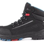 Kotníková pracovní obuv, kožená, reflexní doplňky. Materiál: hydrofobní svršek z 1,6 – 1,8 mm kvalitní štípenkové nubukové kůže, prodyšná oděru odolná mesh podšívka, podešev: PU-TPU, protiskluzová, antistatická, olejivzdorná.