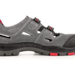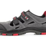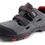 Pracovní sandál, kožený, perforovaný, zapínání na suchý zip s PVC reflexními pásky. Materiál: svršek z 1,6 – 1,8 mm kvalitní hovězí broušené kůže, bez kovových součástí, podšívka z prodyšné a oděru odolné textilie, podešev: PU-guma, protiskluzová, antistatická, olejivzdorná, odolná proti kontaktnímu teplu do 300 °C.