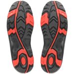 Bezpečnostní kotníková obuv s ocelovou špicí a planžetou, kožená, PVC reflexní pásek. Materiál: svršek z hydrofobní hladké nubukové kůže kombinovaný s PU doplňky, přední část zesílená proti okopu, prodyšná a oděruvzdorná textilní podšívka, podešev: PU/guma, antistatická, olejivzdorná, protiskluzová, odolná proti propichu a kontaktnímu teplu do 300 °C.
