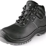 Kotníková bezpečnostní obuv, kožená, s ocelovou špicí a planžetou. Materiál: svršek z 1,8 – 1,9 mm hydrofobní lícové kůže s reflexním PVC páskem, podšívka z prodyšné oděru odolné textilie, podešev: PU-PU, olejivzdorná, antistatická, protiskluzová, odolná proti propichu.