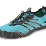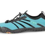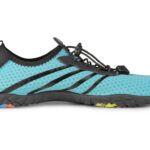 Dámská barefoot obuv s prodyšným a rychlesnoucím svrškem, který se snadno přizpůsobí tvaru chodidla. Konstrukce obuvi umožňuje rychlé nazutí i vyzutí a poskytuje dostatek prostoru prstům. Obuv lze upevnit jednoduchým utahovacím systémem. Měkká a poddajná podešev s protiskluzovým profilem chrání při pohybu po kluzkém povrchu. Otvory v podešvi odvádí vodu a vlhkost. Stélka z prodyšného EVA materiálu přispívá pohodlí chodidla.