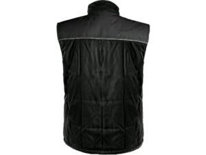 Pánská zateplená vesta, voděodolná s fleecovým límcem i podšívkou, reflexní výpustky, zapínání na zip, stahování v dolním okraji. Kapsy: dvě spodní kapsy zapínané na zip, náprsní kapsy: na pravé straně jedna velká kapsa zapínaná na patku se suchým zi