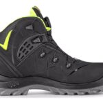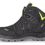 Kotníková bezpečnostní obuv, kožená, s ocelovou špicí a planžetou, reflexní doplňky. Materiál: hydrofobní svršek z 1,6 – 1,8 mm kvalitní štípenkové nubukové kůže, prodyšná oděru odolná mesh podšívka, podešev: PU-TPU, protiskluzová, antistatická, olej