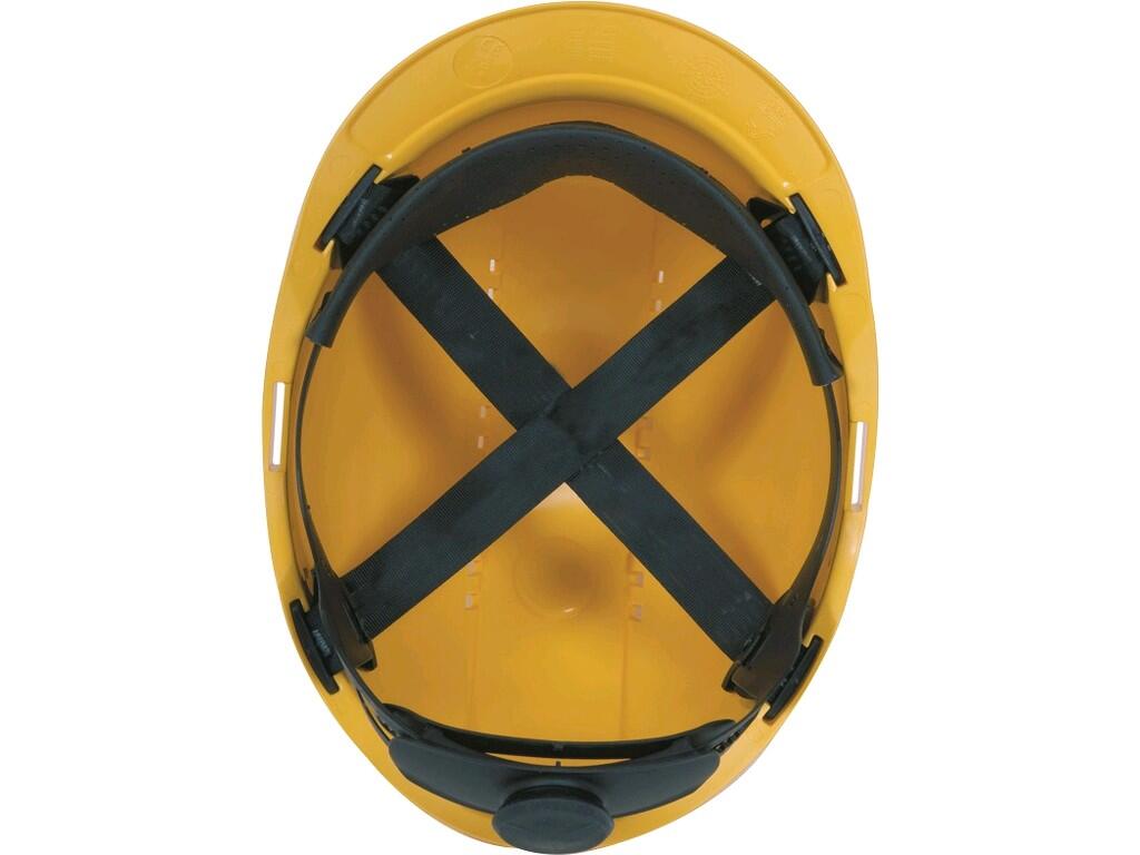 Ochranná přilba se 4-bodovým textilním uchycením s upínacím kolečkem pro individuální nastavení velikosti, teplotní odolnost: -30°C až +50°C, hmotnost: 310 g, uvicator pro určení životnosti přilby, možnost otočení upínacího systému o 180°, což umožňuje nosit přilbu přední částí dozadu. Doporučené použití: stavebnictví a lehký průmysl.