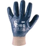Rukavice celomáčené v modrém nitrilu s úpletovou manžetou. Doporučené aplikace: stavebnictví, vlhké prostředí,