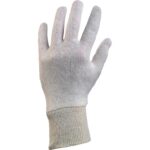 Textilní šité rukavice ze směsového režného úpletu s našitou pružnou úpletovou manžetou. Doporučené aplikace: