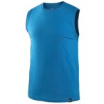 Pánské tričko bez rukávů, kulatý průkrčník. Zpevňující krční a ramenní páska, boční švy. Finální silikonová úprava materiálu, která zajišťuje vyšší měkkost, rozměrovou stálost a omezuje žmolkovatění. Použití v práci i pro volný čas. Vhodné pro potisk