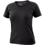 Dámské tričko s průkrčníkem do V, vhodné pro práci i volný čas. Krátký rukáv raglánového typu. Střih zvýrazňující dámskou postavu a elastan pro pružnost a dlouhodobé udržení tvaru. Finální silikonová úprava materiálu, která zajišťuje vyšší měkkost, r