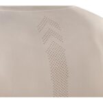 Tričko s krátkým rukávem, kulatý průkrčník, zpevňující krční ramenní páska, zdvojené švy, trup je po stranách beze švů, finální silikonová úprava materiálu, která zajišťuje vyšší měkkost a pružnost, rozměrovou stálost a omezuje žmolkovatění.