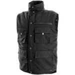 Pánská zateplená vesta s prodlouženým zadním dílem, zapínání na druky, 4 vnejší kapsy s klopou, náprsní kapsa na zip, reflexní doplňky.