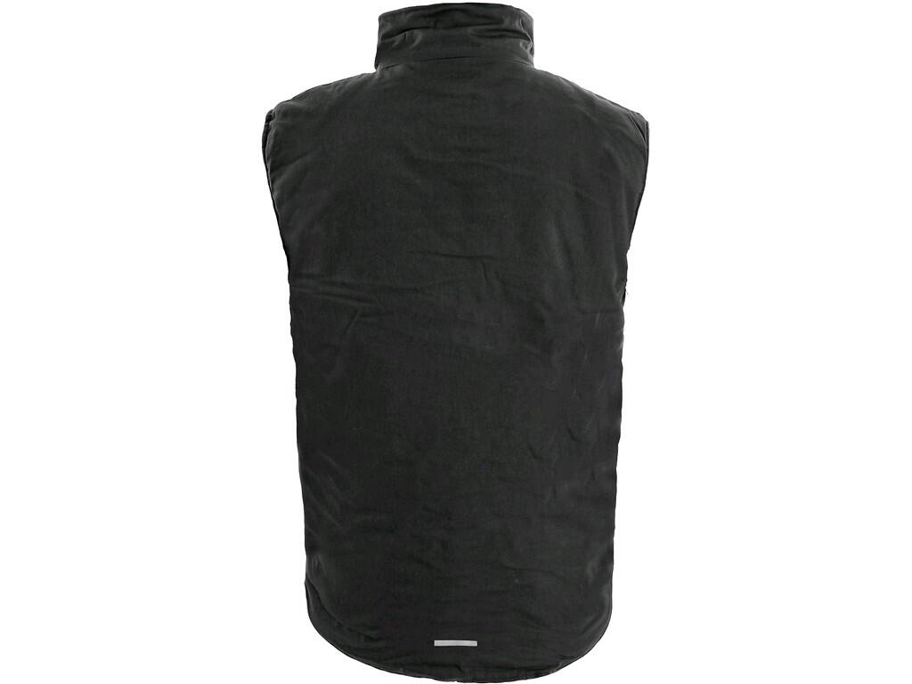 Zateplená vesta, voděodolná, s fleecovým límcem, reflexní výpustky, stahování v dolním okraji, voděodolnost 2000mm.