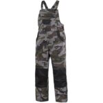 Dětské maskáčové kalhoty s náprsenkou, vybaveny zesílenými koleny a sedem pro delší životnost. Pas na knoflíky, vzadu do gumy, šle s gumou vzadu, náprsní kapsa na zip s menší kapsou, přední i zadní kapsy, boční kapsa, reflexní doplňky.