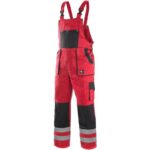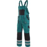 Pánské montérkové kalhoty s náprsenkou, náprsní kapsa na zip, pas vzadu do gumy, přední kapsy, boční kapsa na svinovací / skládací metr, boční kapsa na mobil / peněženku, zdvojená kolena, zadní kapsa s klopou, šle s gumou vzadu, reflexní pruhy. Doporučené použití: strojírenství, stavebnictví, lehký průmysl, automobilový průmysl, logistika, skladová manipulace, spedice, autoservisy, údržba, montáže, zemědělství, zahrada, hobby.