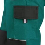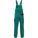 Pánské montérkové kalhoty s náprsenkou, náprsní kapsa na zip, pas vzadu do gumy, přední kapsy, boční kapsa na svinovací / skládací metr, boční kapsa na mobil / peněženku, zdvojená kolena, zadní kapsa s klopou, šle s gumou vzadu, reflexní doplňky. Doporučené použití: stavebnictví, lehký průmysl, logistika, skladová manipulace, autoservisy, údržba, montáže, zemědělství, zahrada, hobby.