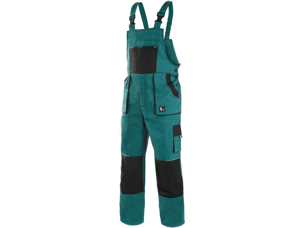 Pánské montérkové kalhoty s náprsenkou – prodloužená varianta na výšku 194 cm. Náprsní kapsa na zip, pas vzadu do gumy, přední kapsy, boční kapsa na svinovací / skládací metr, boční kapsa na mobil / peněženku, zdvojená kolena, zadní kapsa s klopou, šle s gumou vzadu, reflexní doplňky. Doporučené použití: stavebnictví, lehký průmysl, logistika, skladová manipulace, autoservisy, údržba, montáže, zemědělství, zahrada, hobby.