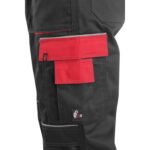 Pánské montérkové kalhoty, pas s poutky na opasek, vzadu do gumy, přední kapsy, boční kapsa na svinovací / skládací metr, boční kapsa na mobil / peněženku, zdvojená kolena, zadní kapsa s klopou, reflexní doplňky.