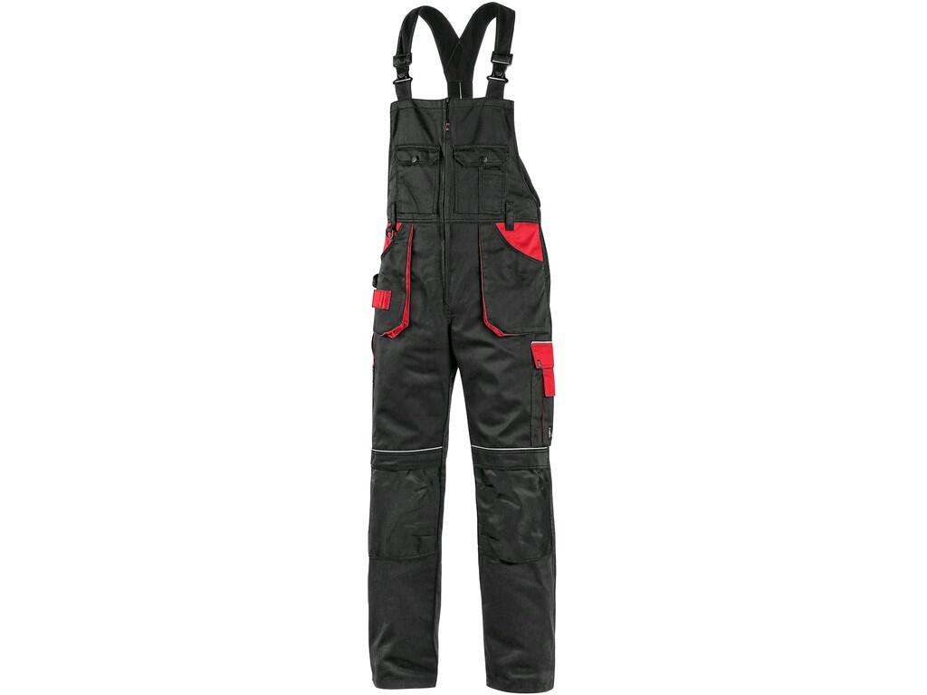 Pánské montérkové kalhoty s náprsenkou, náprsní kapsy s klopami, pas s poutky na opasek, vzadu do gumy, přední kapsy s poutky na nářadí, multifunkční kapsy na obou stranách, kolena zesílena 600D polyesterem s možností vložení kolenních výztuh, dvě zadní kapsy, jedna na suchý zip, šle s gumou vzadu, reflexní doplňky. Doporučené použití: stavebnictví, strojírenství, lehký průmysl, automobilový průmysl, logistika, skladová manipulace, spedice, autoservisy, údržba, montáže, zemědělství, zahrada, hobby.