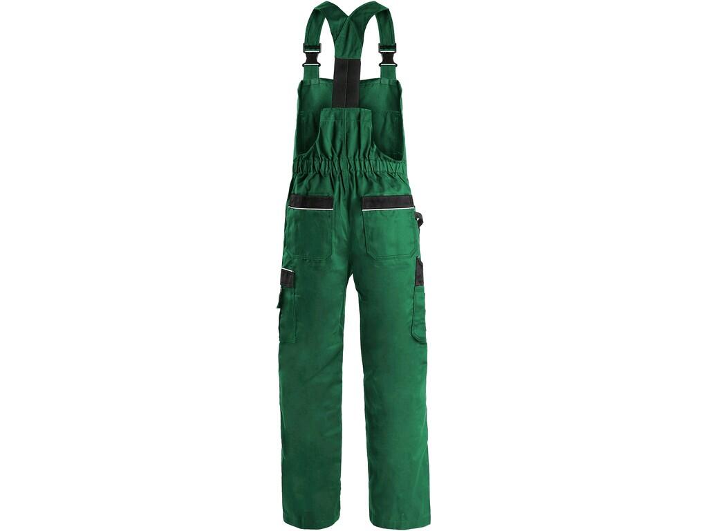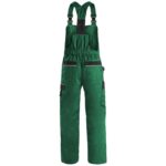 Pánské montérkové kalhoty s náprsenkou, náprsní kapsy s klopami, pas s poutky na opasek, vzadu do gumy, přední kapsy s poutky na nářadí, multifunkční kapsy na obou stranách, kolena zesílena 600D polyesterem s možností vložení kolenních výztuh, dvě zadní kapsy, jedna na suchý zip, šle s gumou vzadu, reflexní doplňky. Doporučené použití: stavebnictví, strojírenství, lehký průmysl, automobilový průmysl, logistika, skladová manipulace, spedice, autoservisy, údržba, montáže, zemědělství, zahrada, hobby.